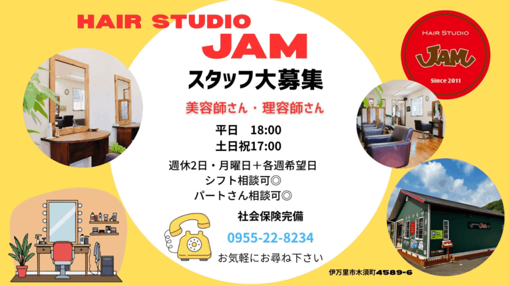 美容室 JAM スタッフ募集のお知らせ